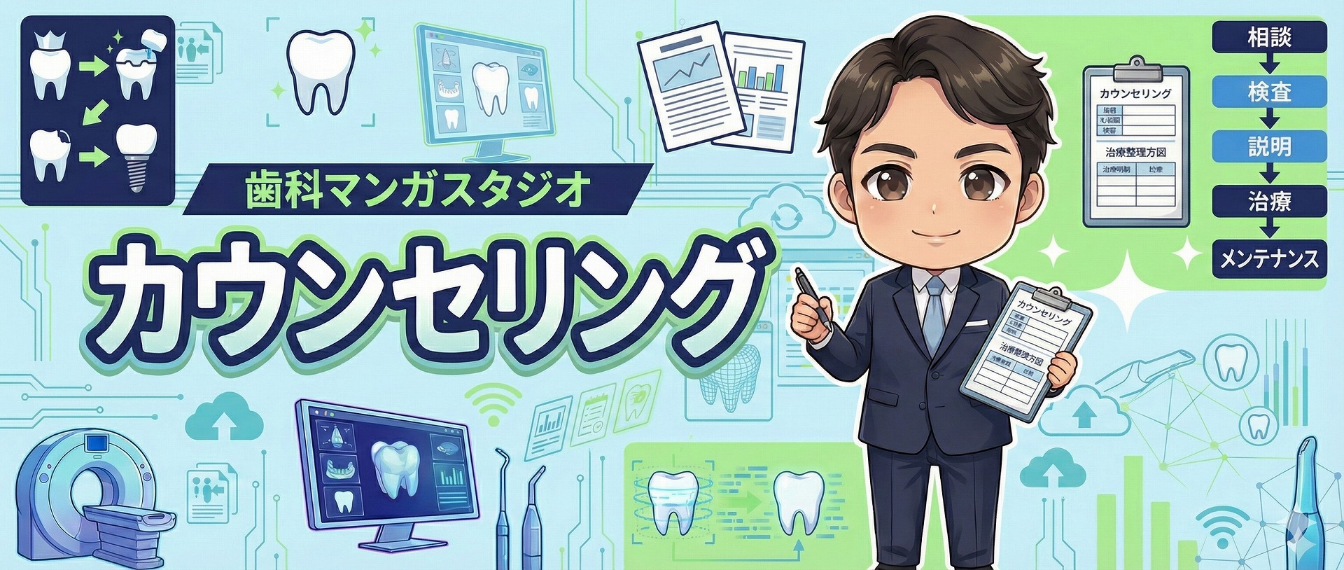 カウンセラーを務めるトリートメントコーディネーターの「荻原」さんは、患者さんの不安や本音をじっくり聞き出し、気持ちに寄り添いながら最適な治療選択を一緒に考えてくれる“心のサポーター”。歯医者が怖い人、過去の失敗経験がある人、家族やお金のことで迷っている人など、一人ひとり事情の違う患者さんに合わせて、言葉の選び方や説明の順番を工夫していきます。マンガでは、「どう聞けば本音を引き出せるか」「どこまで踏み込んで聞いていいのか」「共感と説明のバランス」など、カウンセリングの実践テクニックを、荻原さんのリアルな会話例を交えながらわかりやすく紹介してくれます。