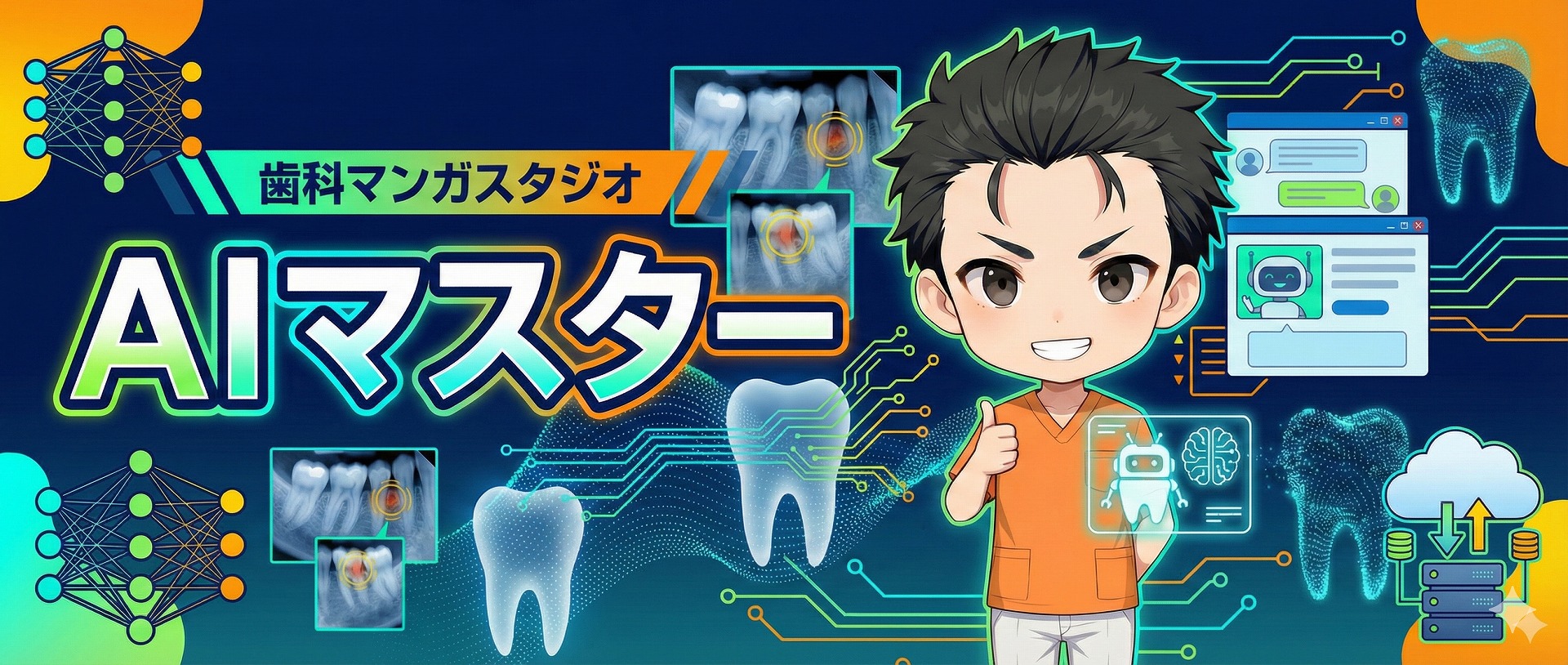 AIマスターの「橙田 陽介」先生は、生成AIパスポートを取得した“AI活用オタク”とも言えるスペシャリスト。ChatGPTや画像生成AI、音声・動画AIまで幅広く使いこなし、歯科医院の業務効率化や資料づくり、患者説明ツールの作成などにフル活用しています。マンガでは、「そもそも生成AIって何?」「プロンプトってどう書けばいいの?」「院内で安全に使うポイントは?」といった疑問を、失敗例やあるあるネタも交えながらやさしく解説。AIが“難しいITツール”ではなく、“味方につければ超心強い相棒”だと感じてもらえるよう、実践的な使い方を楽しく教えてくれます。